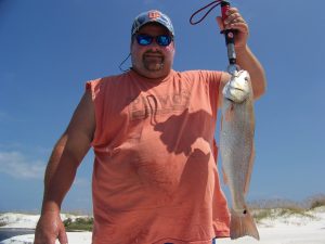 Today i was able to fish with the CEO of Fayards Marine Fabication, Mark Fayard. Mr. Fayard and i hit the water before daylight and caught some small Trout in the dock lights with Artificial Shrimp. As the sun started to rise we drifted across the grass flats following the schools of small Mullet. Making long cast across the schools of bait with a Gold Spoon produced a nice Bluefish rather quickly. Before leaving the flats Mr. Fayard had several strikes at his topwater Chugger and was able to land a nice 23″ Redfish on a Super Fluke. The bait thinned out so we left and headed for the Pass. After a quick stop for bait we were ready to go with a livewell of Bull Minnows, Finger Mullet and Pinfish. We made a few drifts with the outgoing tide resulting in small Red Snapper, Sharks and more Bluefish action. With the tide at a stand still we decided to call it a day. Mr. Fayard is a good friend and his Fabrication skills have helped Lost Bay Guide Service be able to provide a safe and comfortable trip for the clients. Resembling Larry the Cable Guy he is quick to tell you that Larry says “Git-R-Done” and he says “Git