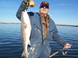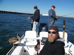 Today i guided Skip Williams and two of his friends from Tennessee. Skip is a regular customer at Lost Bay Guide Service and always a pleasure to fish with. This was the first time for Dave Rollin and Kirby Dies to fish in saltwater and they made the most of it with lots of Redfish action and plenty of Trout kept for a fish fry. Dave served in the United States Army during the Vietnam War and i made sure to let him know how much i appreciated his service to our country. It was an honor to be able to take Dave out and put him on his first Bull Red. Our morning started off with some drag screamin’ action from Bull Redfish on light tackle and artificial baits. Neap tide caused less water movement then we would of liked but we were still able to have a great day of fishing. For about an hour of our trip we were joined by “Stiffy” one of the locals that has since became the Mascot for Lost Bay Guide Service. I had a great time spending the day with these three gentleman and look forward to fishing with them again in the future.