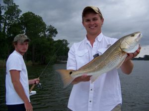 For todays second trip i guided Wayne and Jessie from Cedartown, Georgia. Both of these young men will be seniors in high school next year and they are two of the politest young men i have seen. Wayne is a VERY skilled angler for his age and will surely see a lifetimes worth of great fishing. Jesse has been friends with Wayne for years and decided to accept his offer to come to the beach for a few days and do some back bay fishing. Though Jesse’s expertise is horseback riding he caught on pretty quickly to the world of Speckled Trout fishing. Our evening began with Wayne quickly bringing a few slot Redfish to the boat along with a keeper Speckled Trout. As darkness settled on the bayou we began fishing the dock lights and getting some more Speckled Trout and a few smaller Redfish. Both young men were an absolute pleasure to fish with and knowing that they have a lifetime of great fishing adventures ahead i gave them both a certificate for a free membership to the International Game Fish Association. Here are a few pics from the trip. All fish were caught on artificial baits.